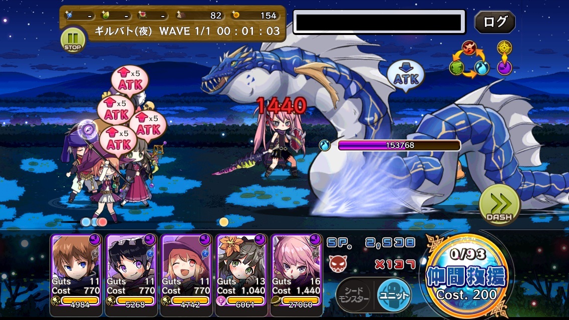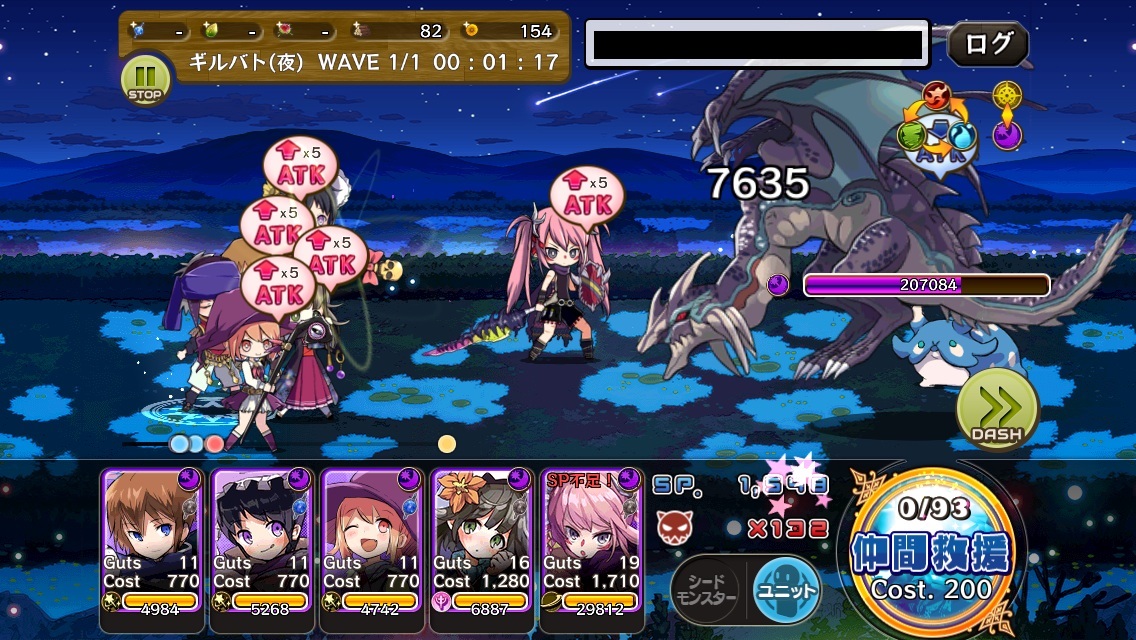 後衛3人のGutsを残りSP見ながら1つでも多く上げます
