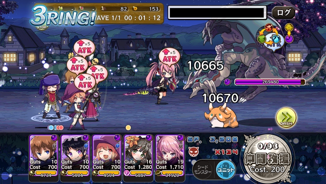 後衛3人を一気にGuts10まで連打