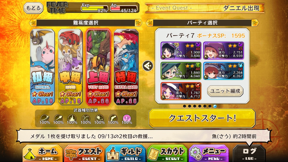 せっかくなので、☆2後衛魔法PTでダニエル上級いってきました