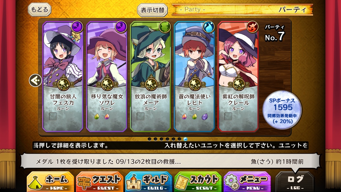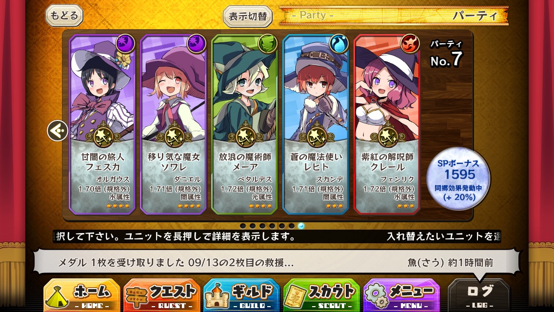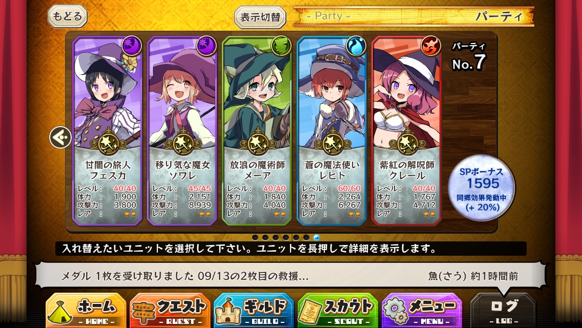前に200ゴルドスカウトで手に入るユニットを進化させたPTの記事を