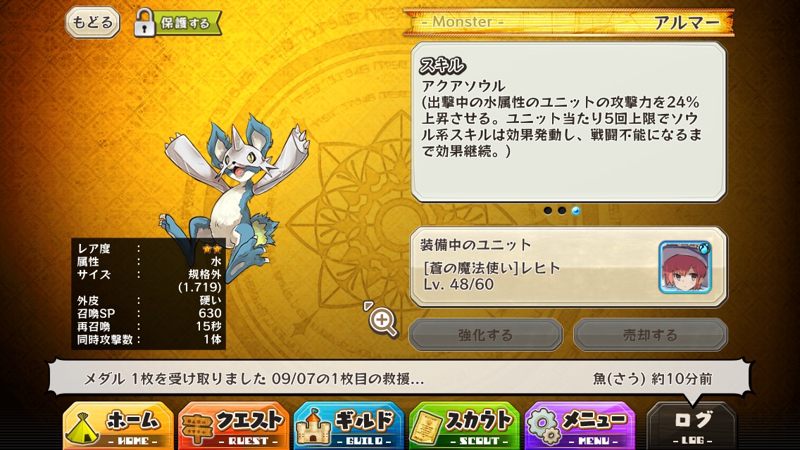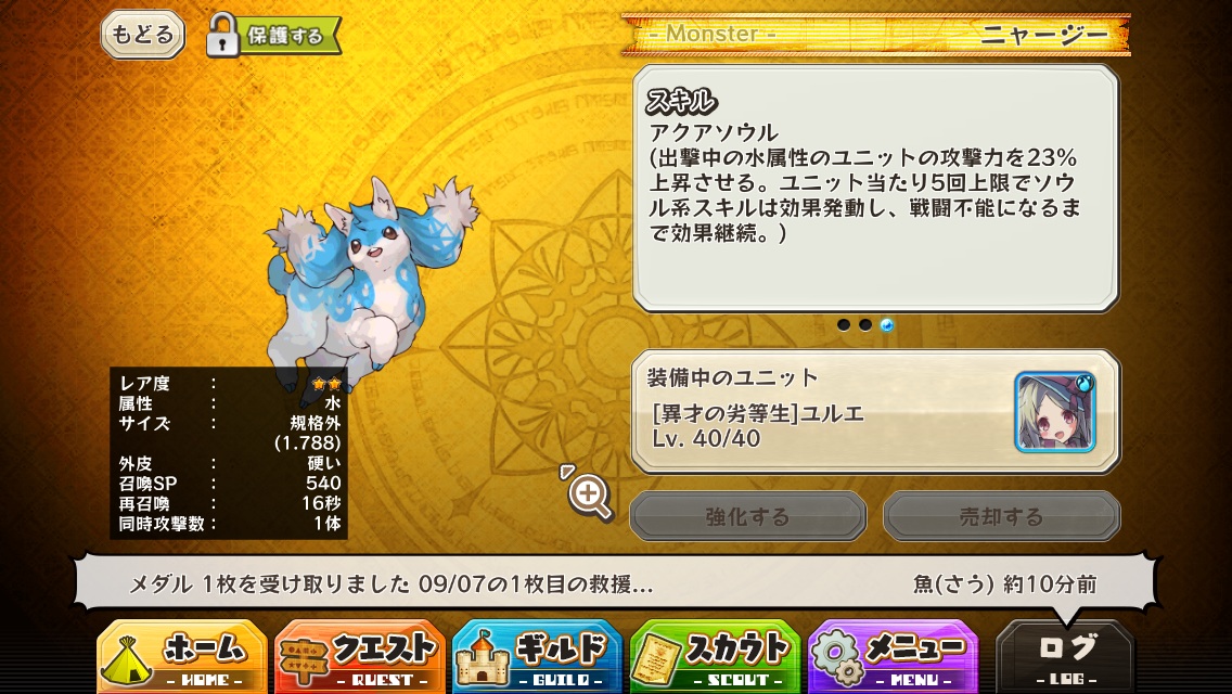 アクアソウルは水属性ユニットの攻撃力を上げるスキルなので