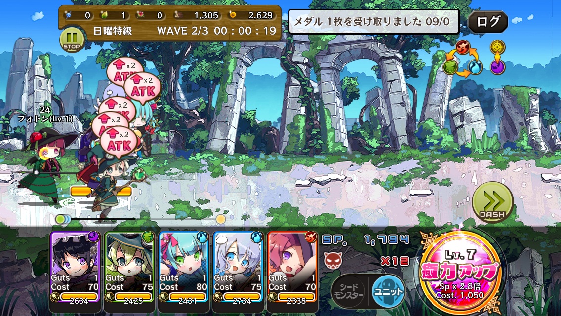 スラッシュソウル:出撃中の斬属性と弓属性のユニットの攻撃力を上昇